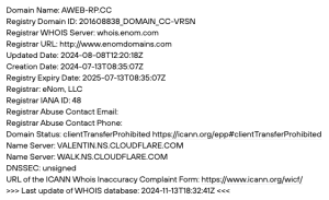 - Основной рабочий домен aweb-rp.cc зарегистрирован в середине июля 2024 года.