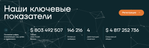 Сайт встречает огромным баннером и блоком «Ключевые показатели», где гордо выведены цифры: