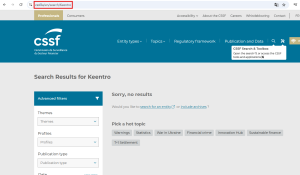 [Здесь добавить фото скриншота фейковой лицензии с сайта, alt=»Фейковая лицензия Keentro от CSSF»]