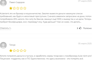 Отзывы Kulanient — негативные, с фокусом на развод.