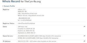 - Возраст платформы — на сайте написано «работаем с 2017 года», но реальный личный кабинет и торговая платформа находятся на домене thecyn-ro.org, который зарегистрирован всего несколько месяцев назад